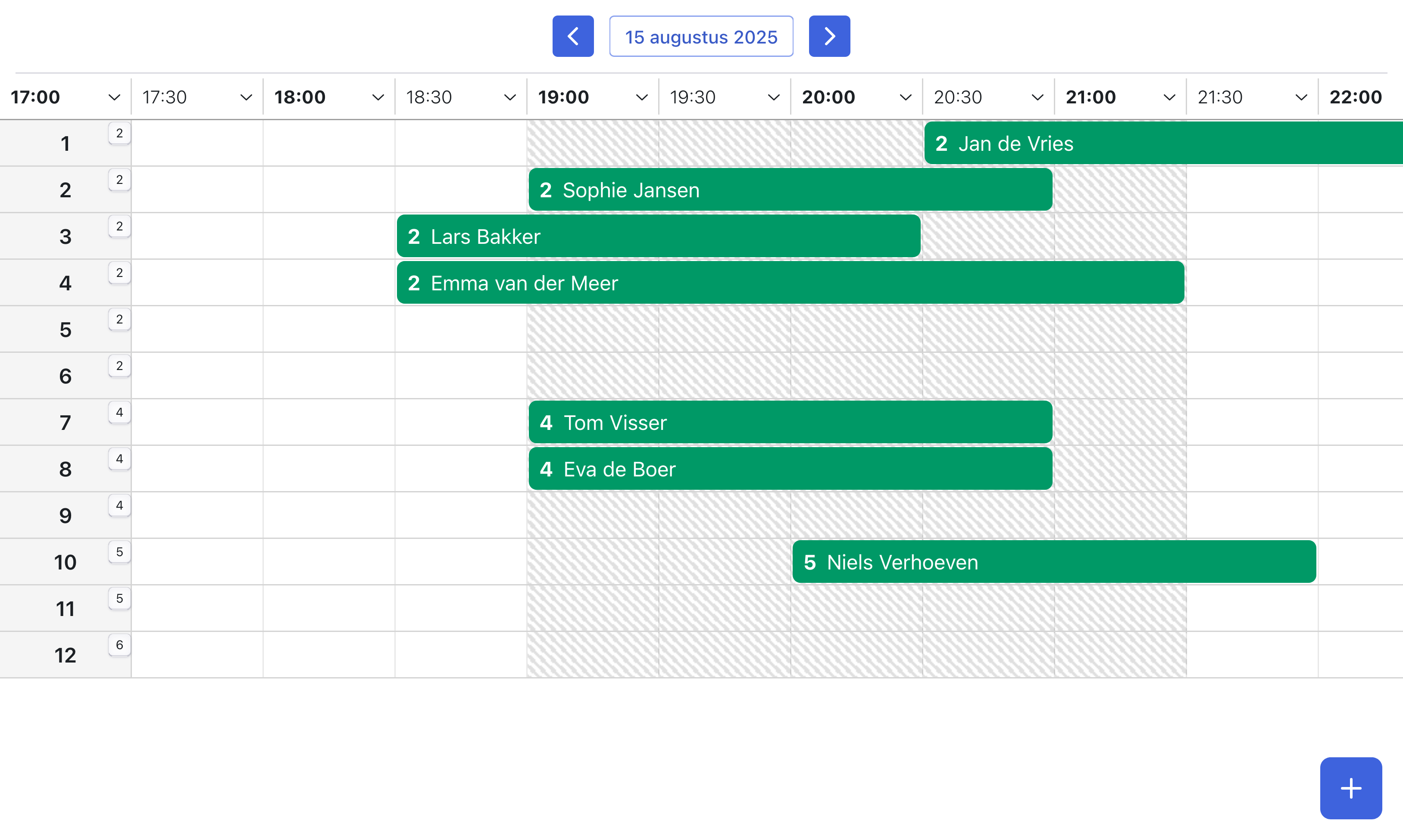 Zie in één oogopslag hoe de planning er voor vandaag uitziet en of er nog ruimte is voor binnenlopers.
