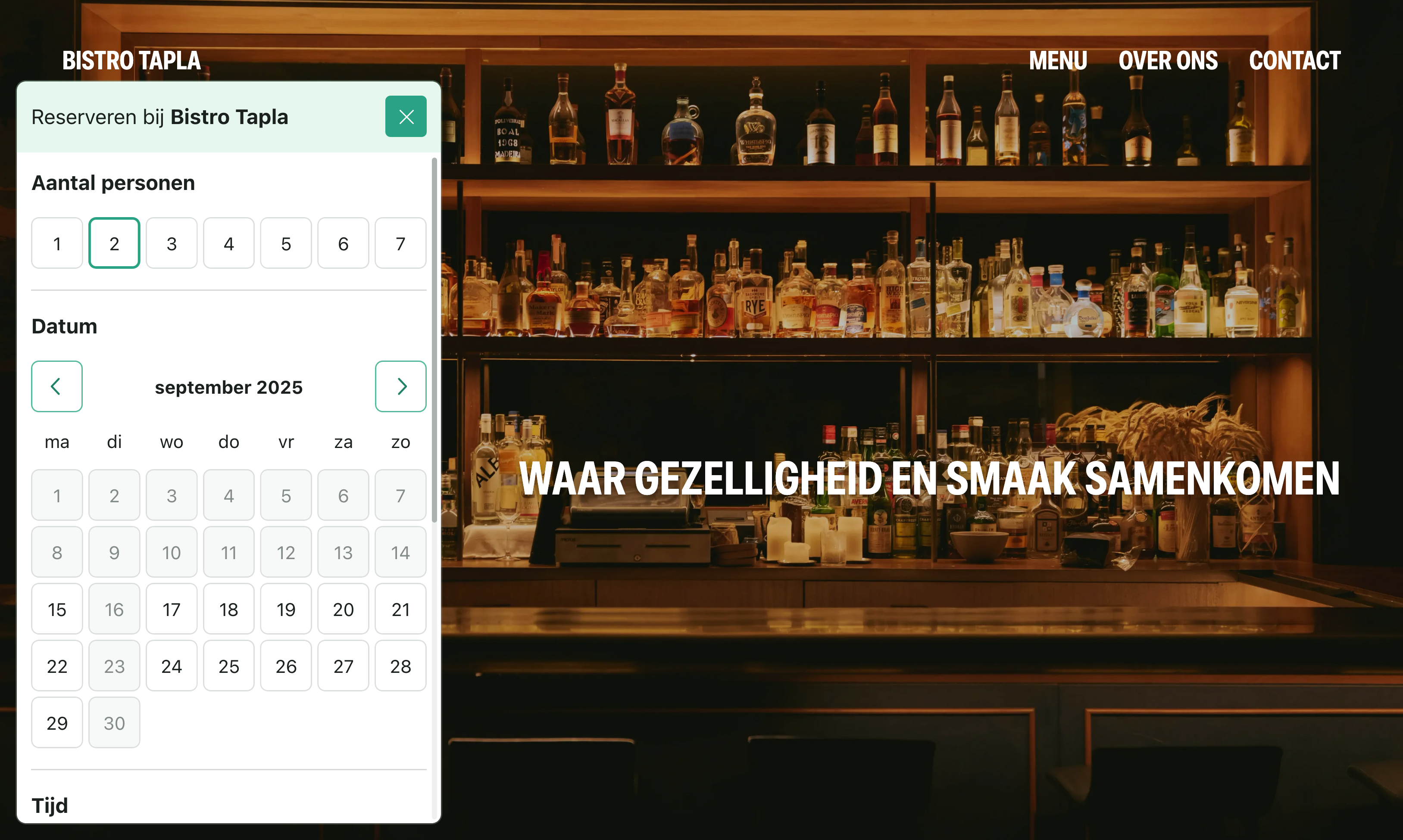 Tapla is ontworpen om zo eenvoudig mogelijk te zijn. Geen overbodige functies, geen ingewikkelde instellingen. Gewoon een gebruiksvriendelijk systeem waarmee jij en je gasten snel en gemakkelijk reserveringen kunnen maken en beheren.
